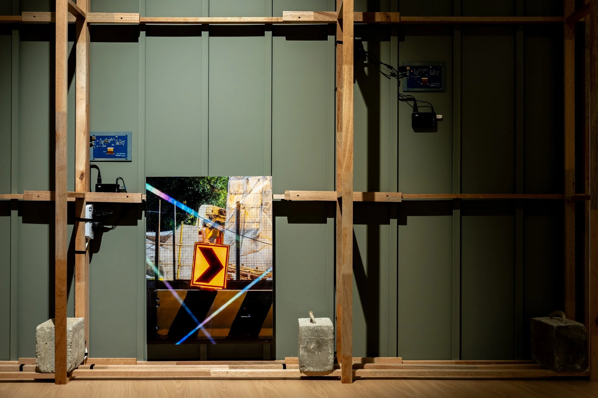 Across all three works in the exhibition, the utilisation of virtual images is compelling in capturing the sense of alienation between the grating present lived experience and the promises of a promised future that may or may not come to fruition. While this exhibition will not expedite any construction works, perhaps the poetic lenses the works lend to construction can make things slightly more bearable.