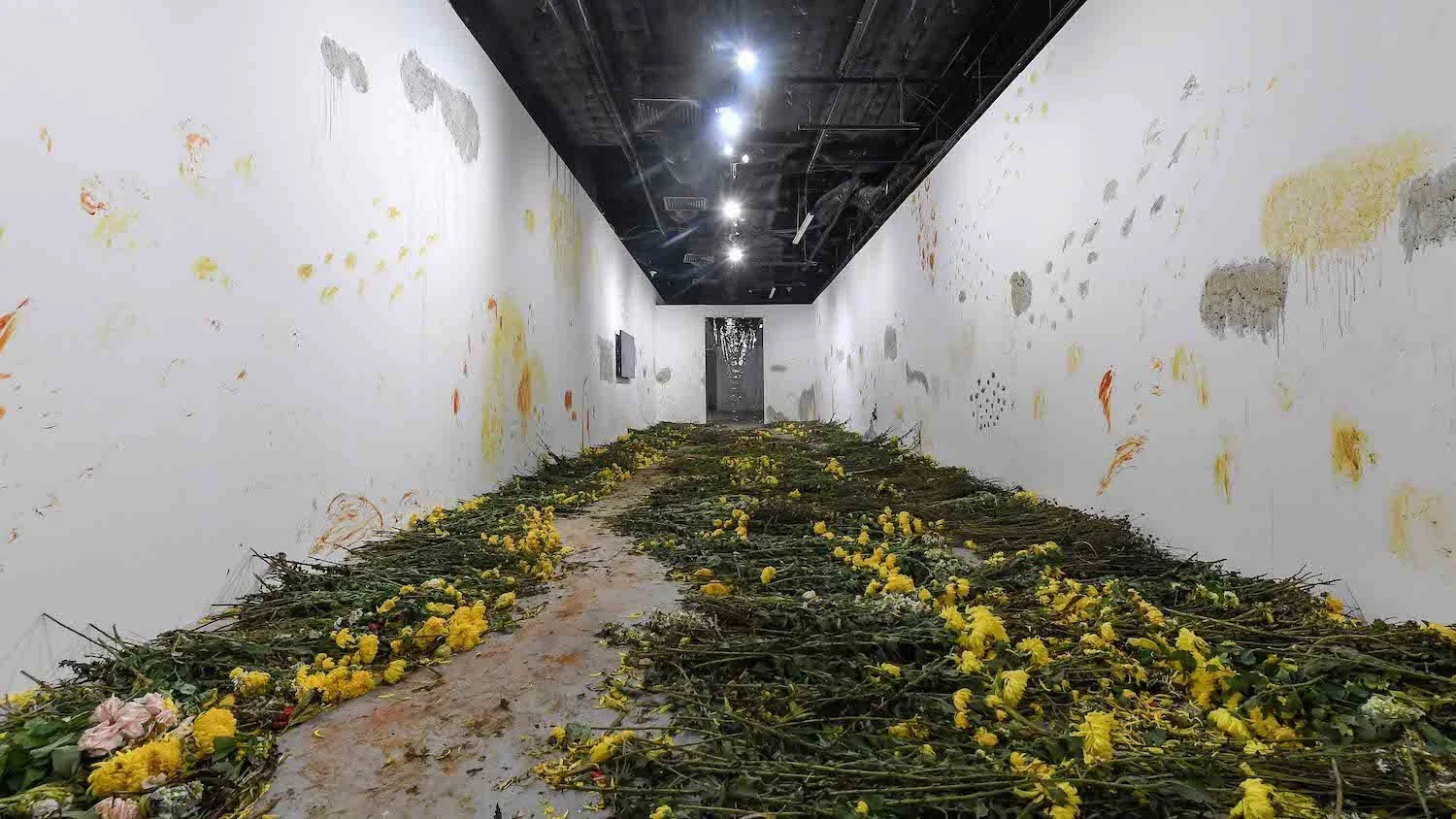 Decaying flowers also played a central role in your recent installation at the VCCA in Hanoi last year, where you made some Cy Twombly-inspired paintings on the walls, and heaped piles of flowers from the Hanoi flower market on the floor. What were the process and thoughts that went into that work?