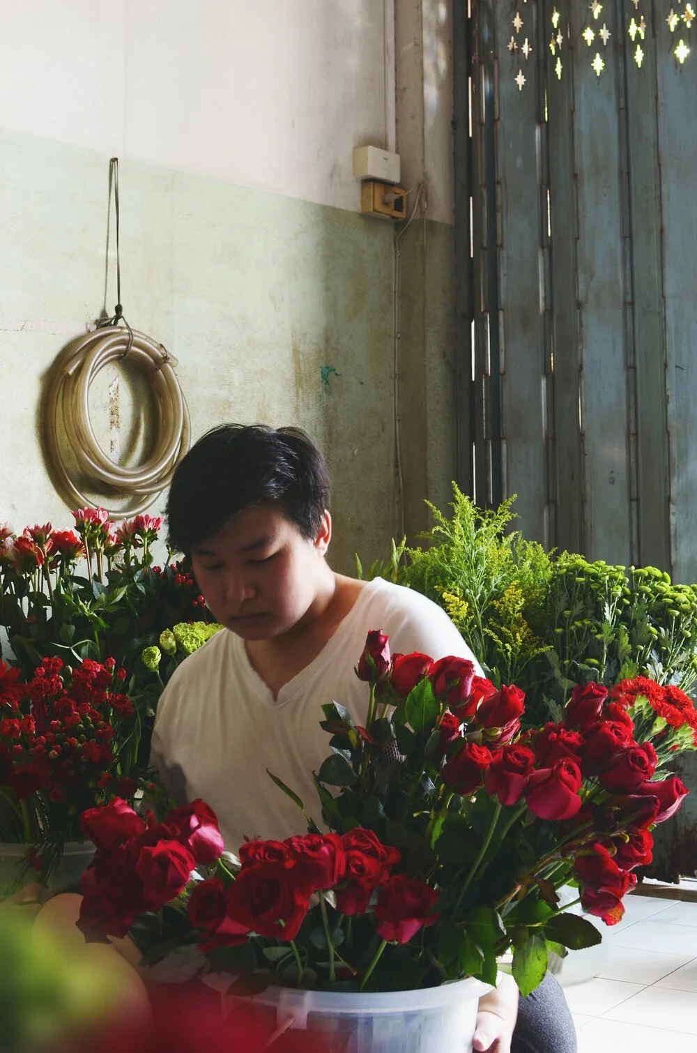 Through a single stemmed red rose to say ‘I love you’ or a bouquet of white flowers to say ‘I grieve with you’, flowers send messages to people when words alone do not suffice. Thai artist Naraphat Sakarthornsap uses floral installations and photography to craft intimate stories about his childhood trauma, queer masculinity, and pandemic struggles, offering tender messages about human vulnerability.