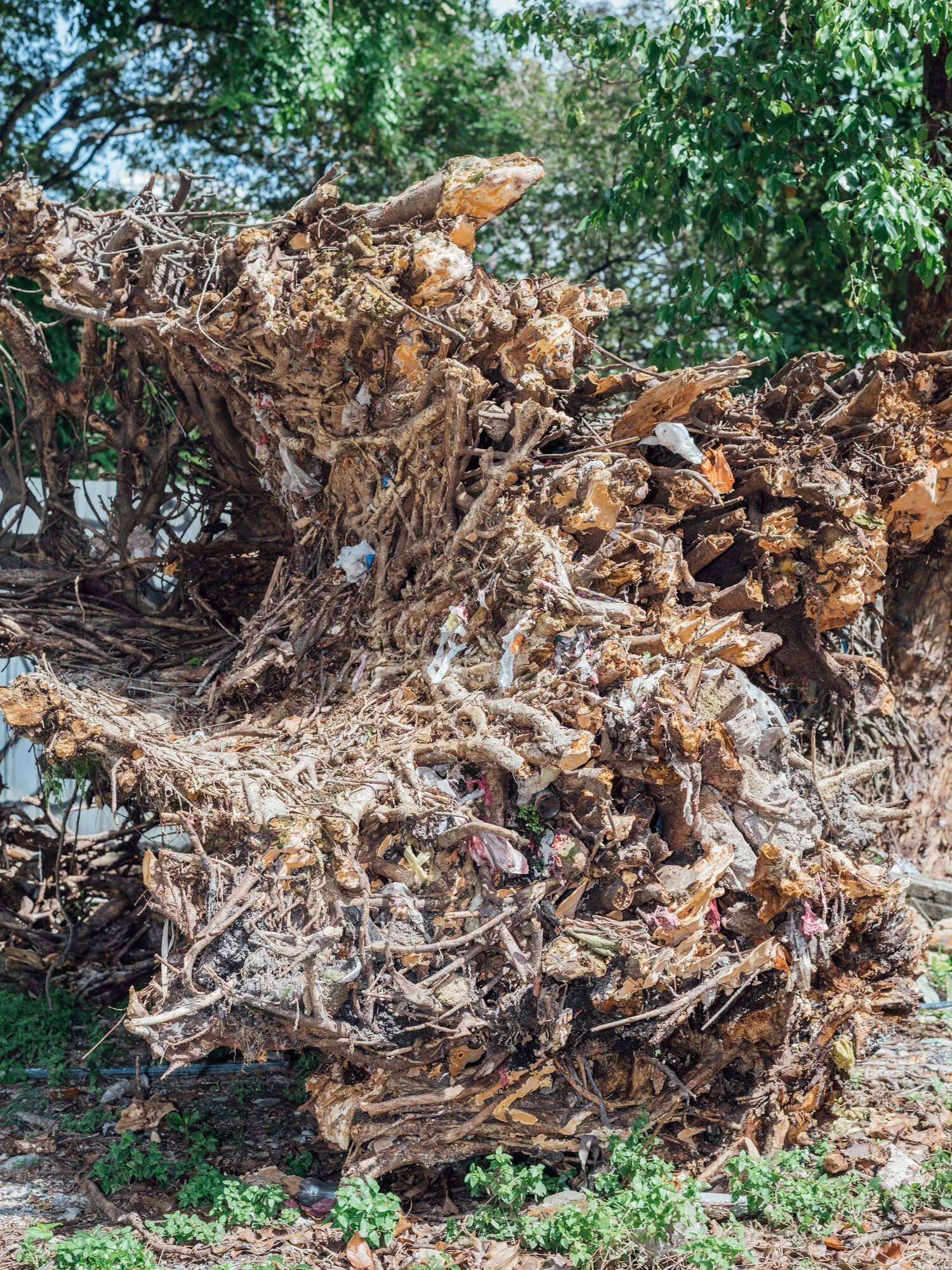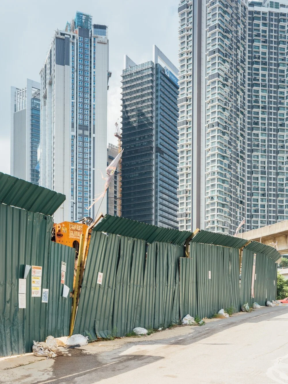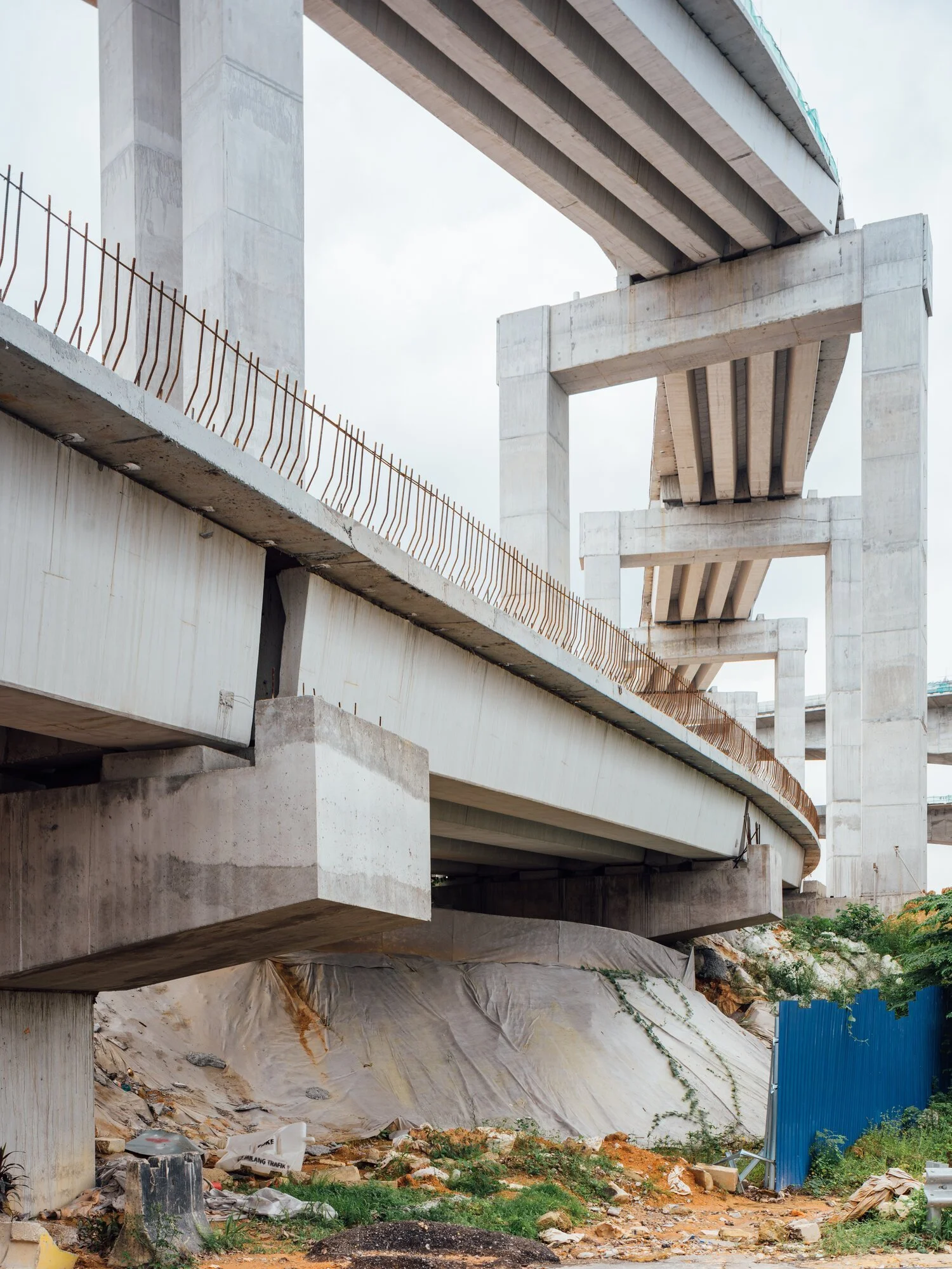 At 7pm on 19 June 2021, steel scaffolding on the DASH highway under construction in Malaysia’s Klang Valley collapsed. It left two workers injured. Images were quick to circulate online: rebar penetrating violently out of solid concrete, bent from gravity’s pull; the neon orange of a tractor’s grappling hook pulls a chain, which in turn is tenuously connected to a fallen scaffold wrapped in blue and green mesh, all lit in the imperious afterglow of a too hot, too sticky evening. These pictures are infrastructure porn, evoking the perverse pleasure of seeing concrete megaliths fall apart under their own physical and symbolic weight. Two days later, however, news reports were reassuring: highway traffic flow was back to normal, no concern needed. Few outlets cared to mention that one of the injured workers had died.