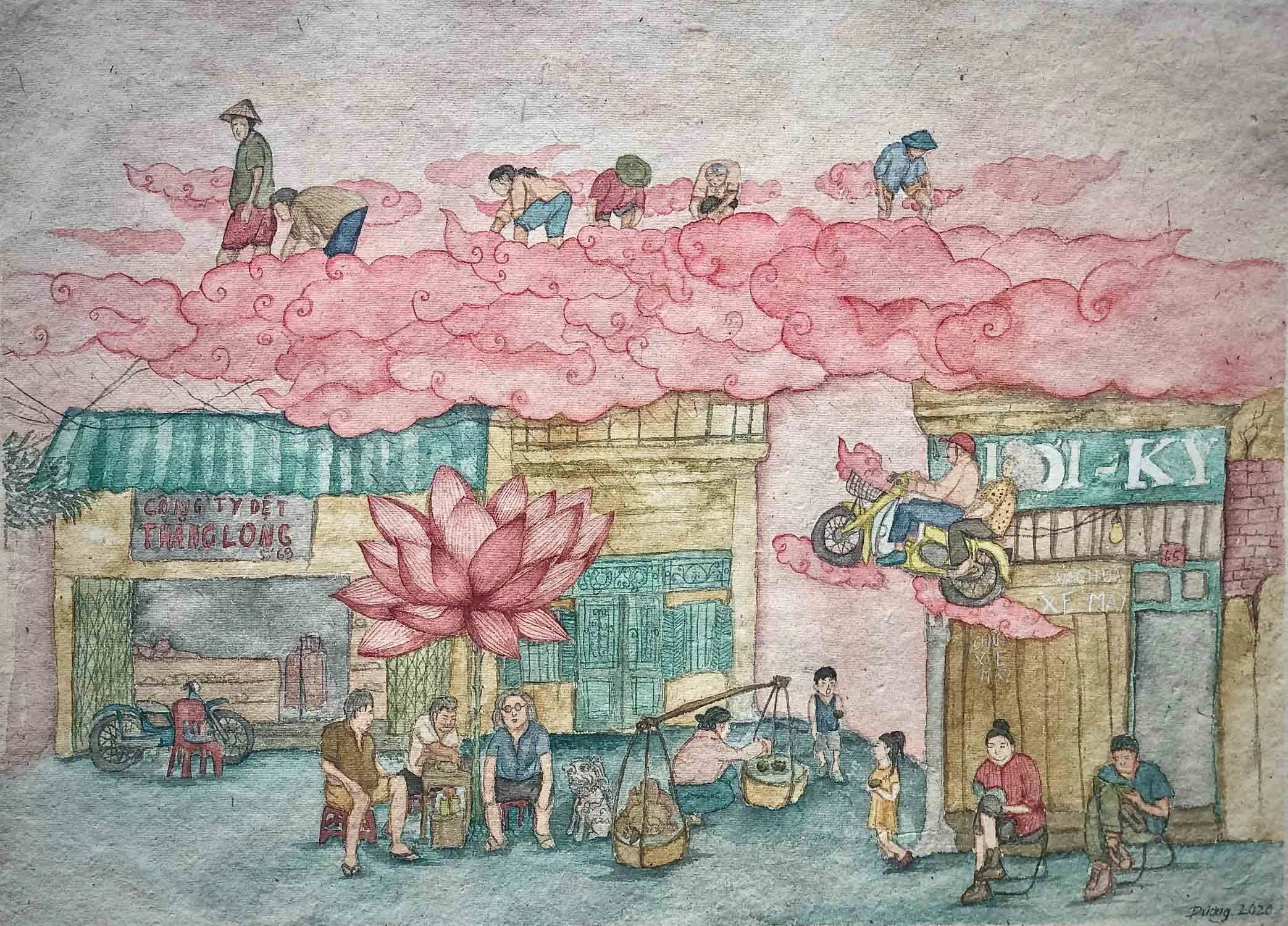 Vietnamese artist Duong Thuy Nguyen (b.1991) is a strong advocate for artists to bring pertinent messages across and beyond Southeast Asian communities. Born in Hanoi, Vietnam, Duong explores the intersections between contemporary art and social response and develops practice-based research that reflects social cohesion, community identity, and the interaction between humans and nature.
