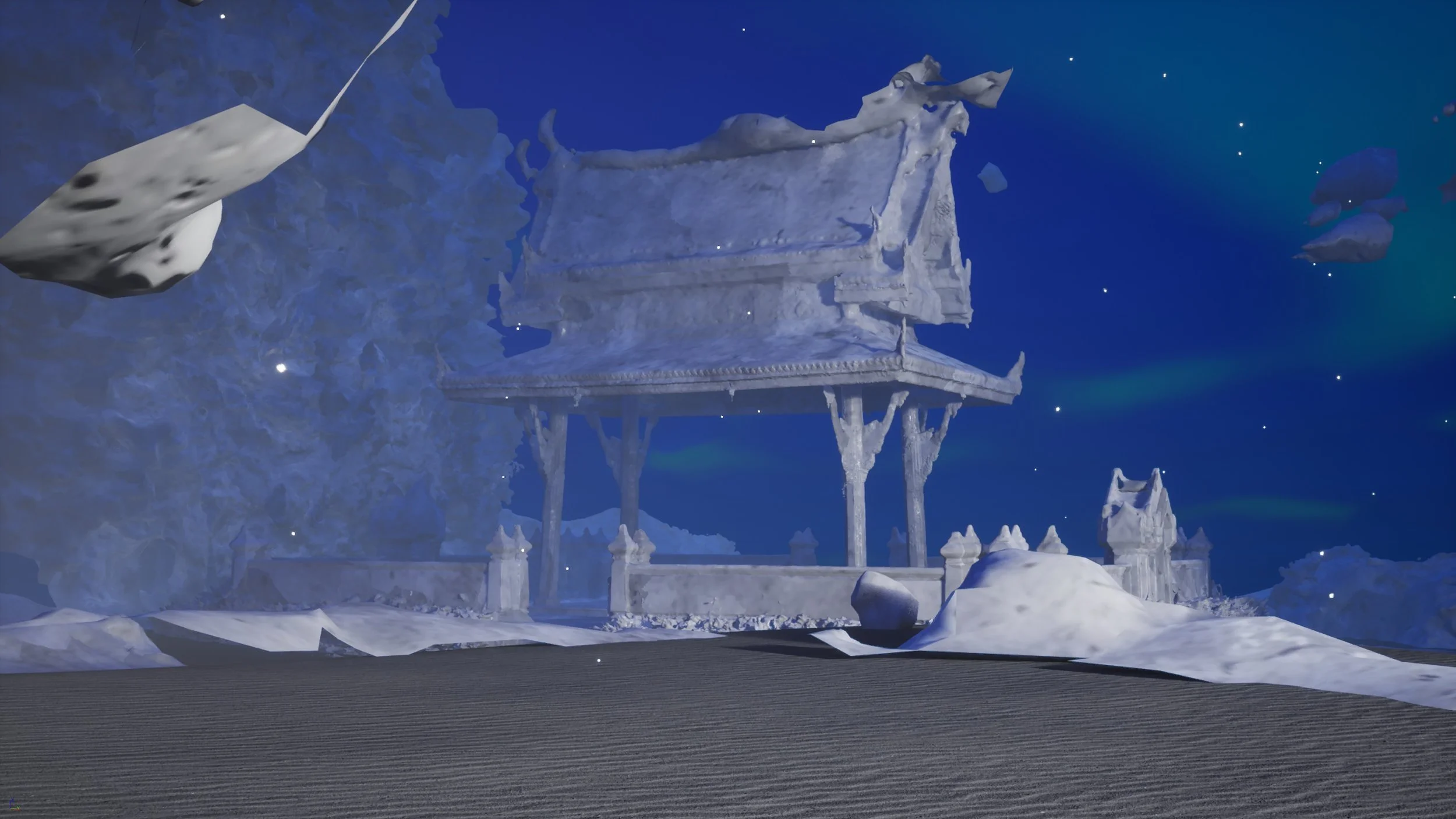 The theme of death is also found in Saroot’s latest project Spirit-forward in G Major (2023). In particular, he is interested in the funerary practices of Thai expatriates in Germany and how they have evolved. In the Virtual Reality (VR) component of the project titled A Glimpse Beyond, audiences inhabit the perspective of the deceased and traverse an otherworldly environment with fragments of real-world locations. Among the digitally reconstructed sites is the Sala Thai, or open pavilion, in the German city of Bad Homburg, which is the only place outside of Thailand with two Sala Thai. The pavilion serves as an anchor for Thai history and culture. For Thai immigrants, it is a marker of familiarity amidst an alien landscape. Saroot simulates a similar sense of displacement through the VR experience, with the hope of humanising the diasporic journey.