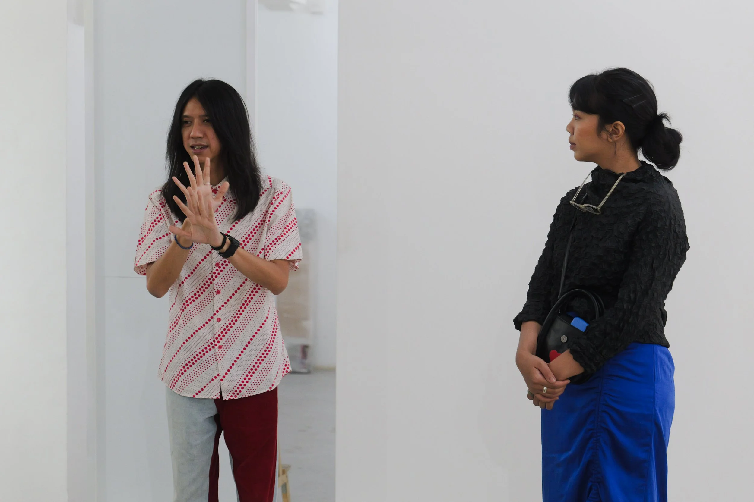 Curator Ibrahim Soetomo (left) and artist Haiza Putti (right) during the show’s opening at RUBANAH. Image courtesy of M. Revaldi.