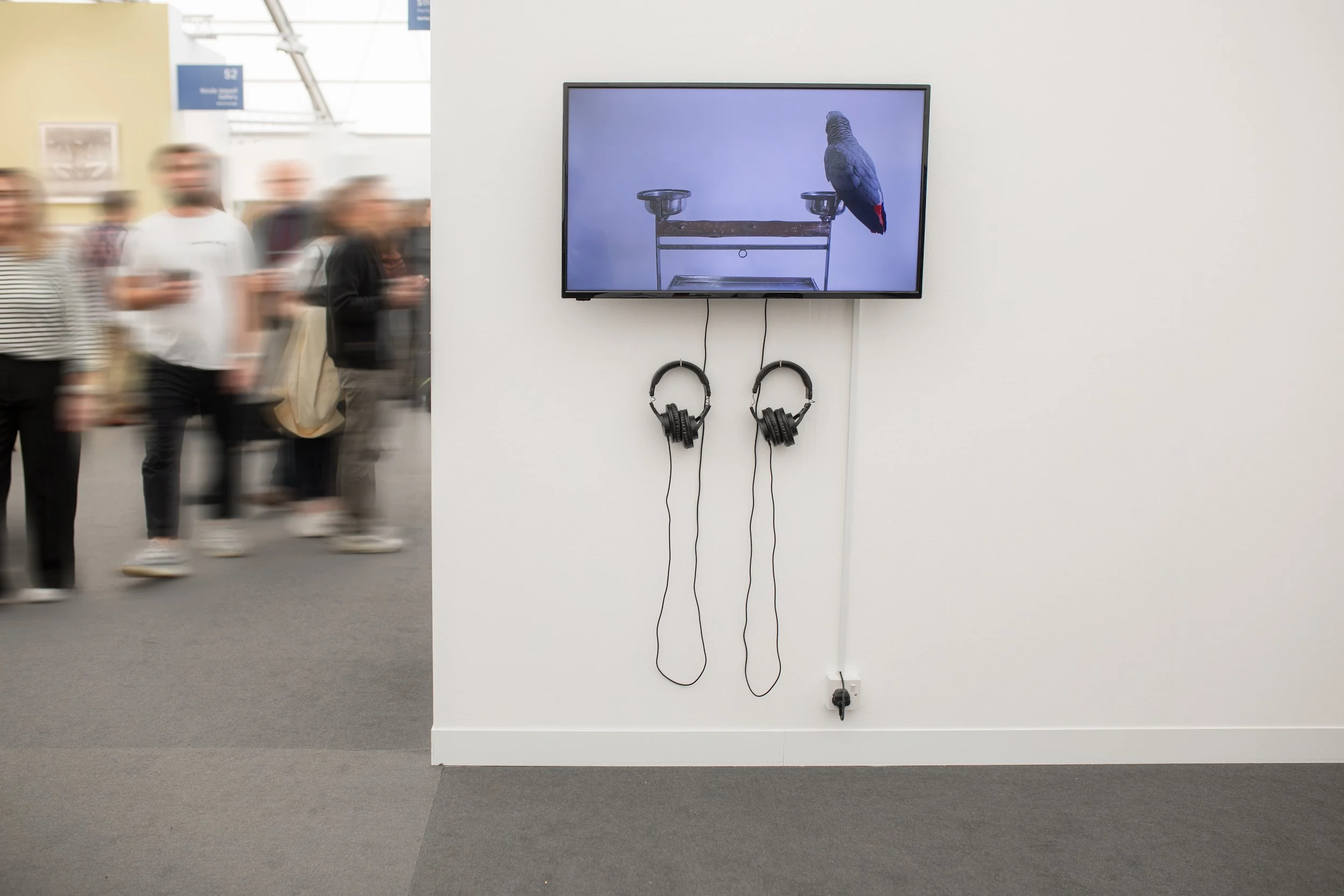 People Say Nothing is Impossible, but Beuys Does Nothing Every Day (2023) was a deliberate choice for Frieze London due to its unconventional nature. This unique collaboration with my parrot, Beuys, unfolds in two phases. We use Joseph Beuys' works as a framework to challenge conventional notions of art and explore human-animal relationships. Through this project, we question the human-centric perspective that assumes human dominance in the universe.