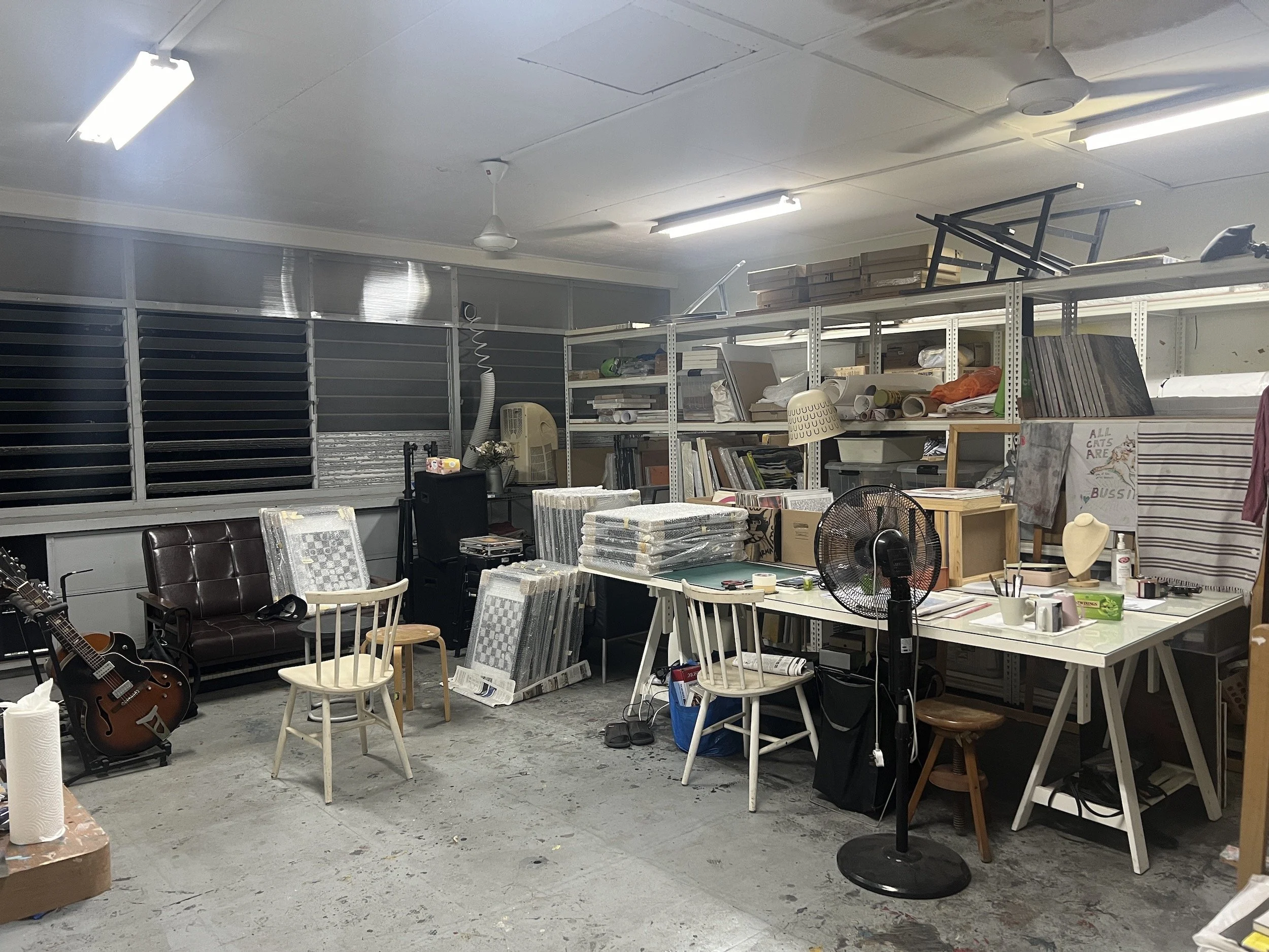 Storage and working spaces in Jeremy’s studio. Image courtesy of the artist.
