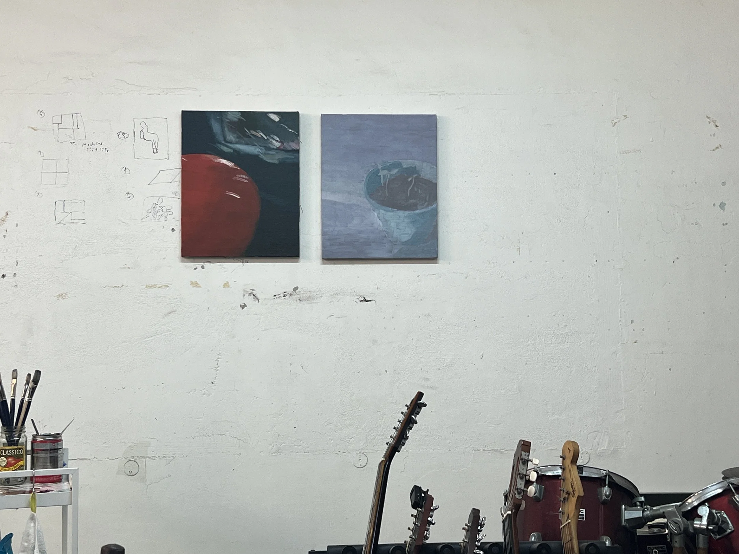 Paintings and scribbles on Jeremy’s studio wall. Image courtesy of the artist.