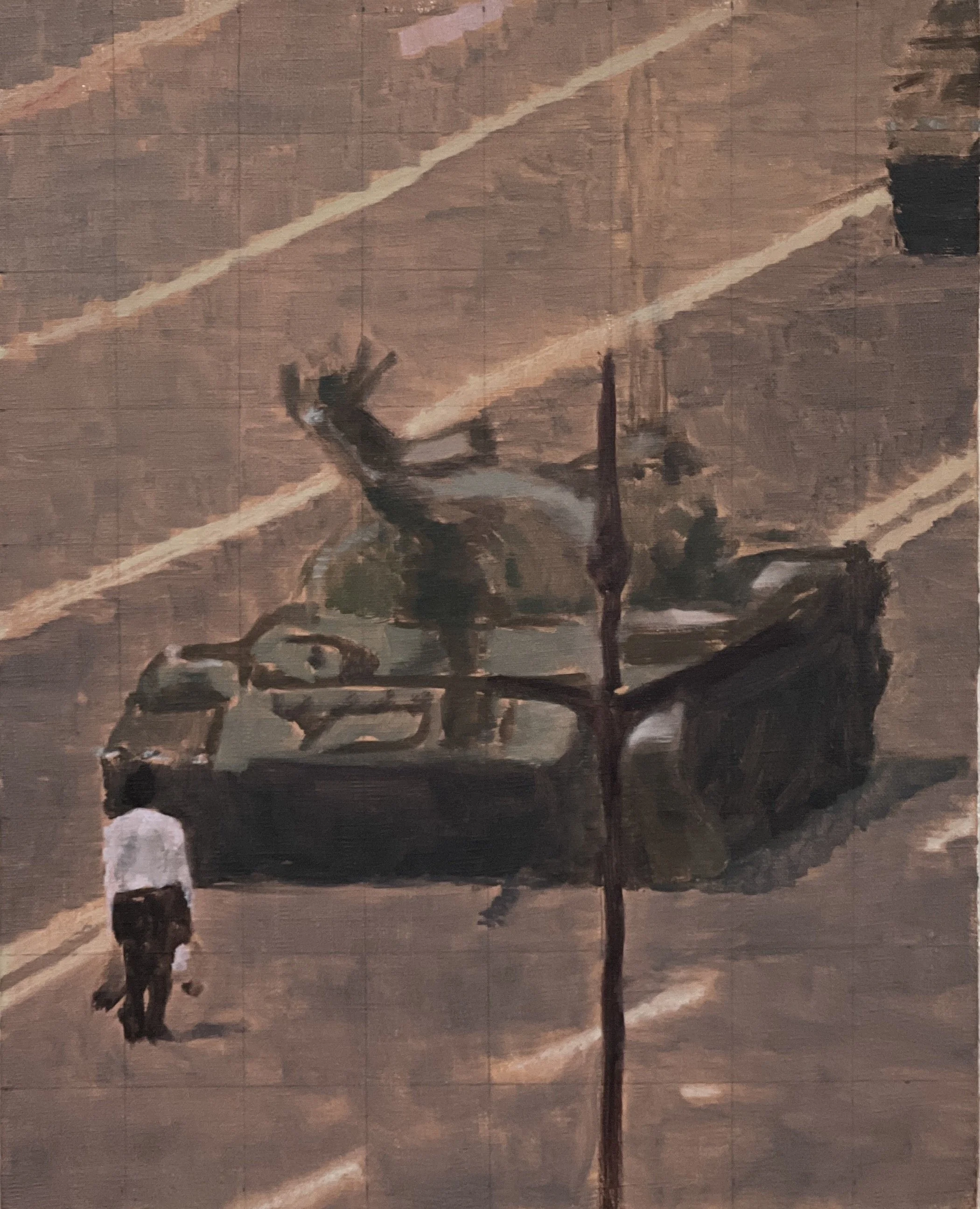 You are absolutely right to point this out. It has something to do with same-ness and “monochromy”. If you look past the image and its representation, they are just paintings defined and unified by the same format, palette and structure. I am fascinated by the ideas of difference and repetition. I leave the grid as it is, and make no attempt to hide the painting’s construction. How much of the grid is visible depends on the amount of time I invest in the painting.