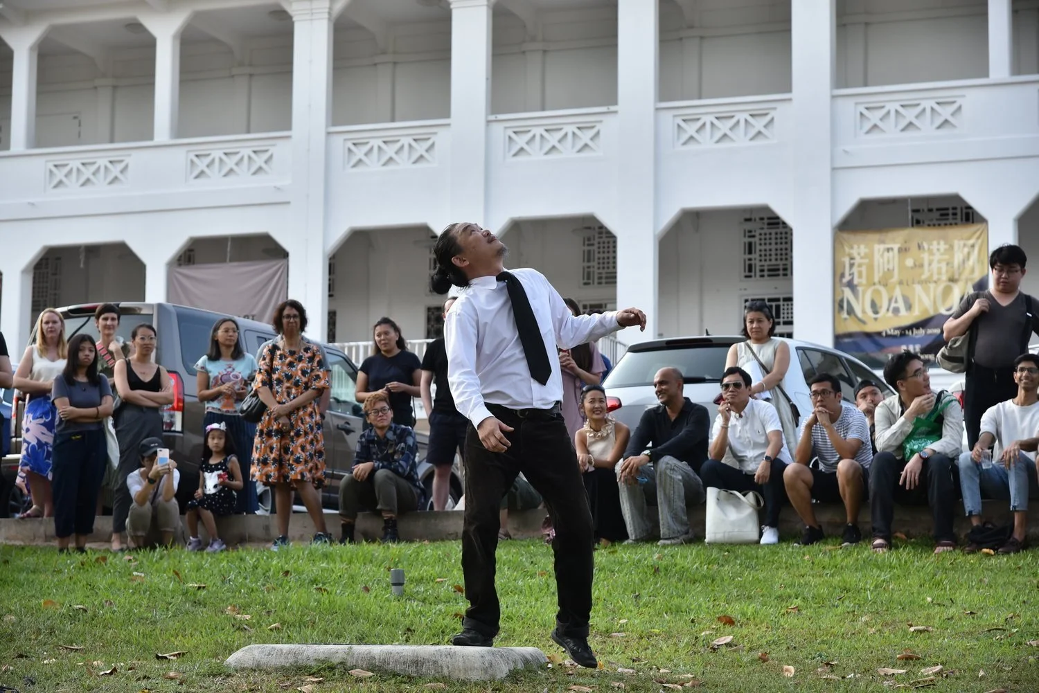Jeremy Hiah performing Coward at Gillman Barracks on 27 July 2019. Image courtesy of the artist and Chan + Hori Contemporary.