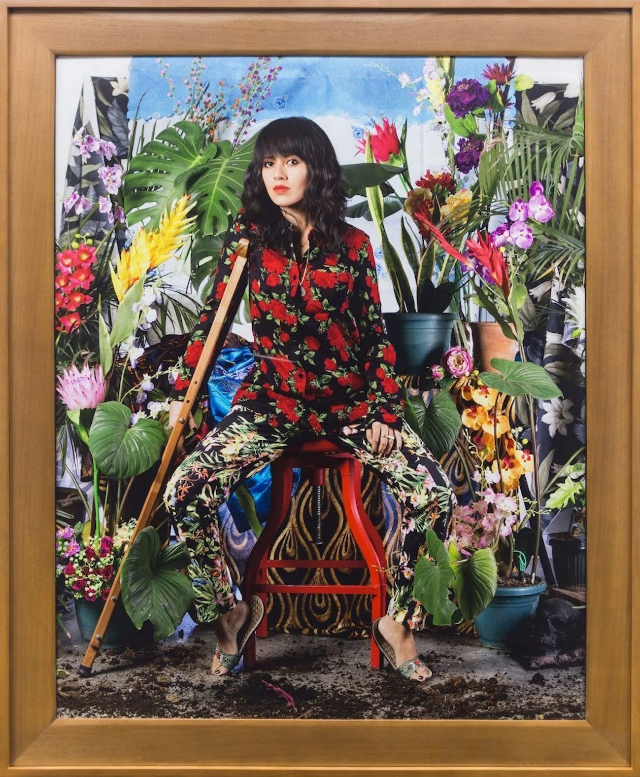 Wawi Navarroza, I Want To Live A Thousand More Years (Self-Portrait After Dengue, with tropical plants and fake flowers)’, 2016, archival pigment print, 127 x 101.6cm. Image courtesy of Silverlens.