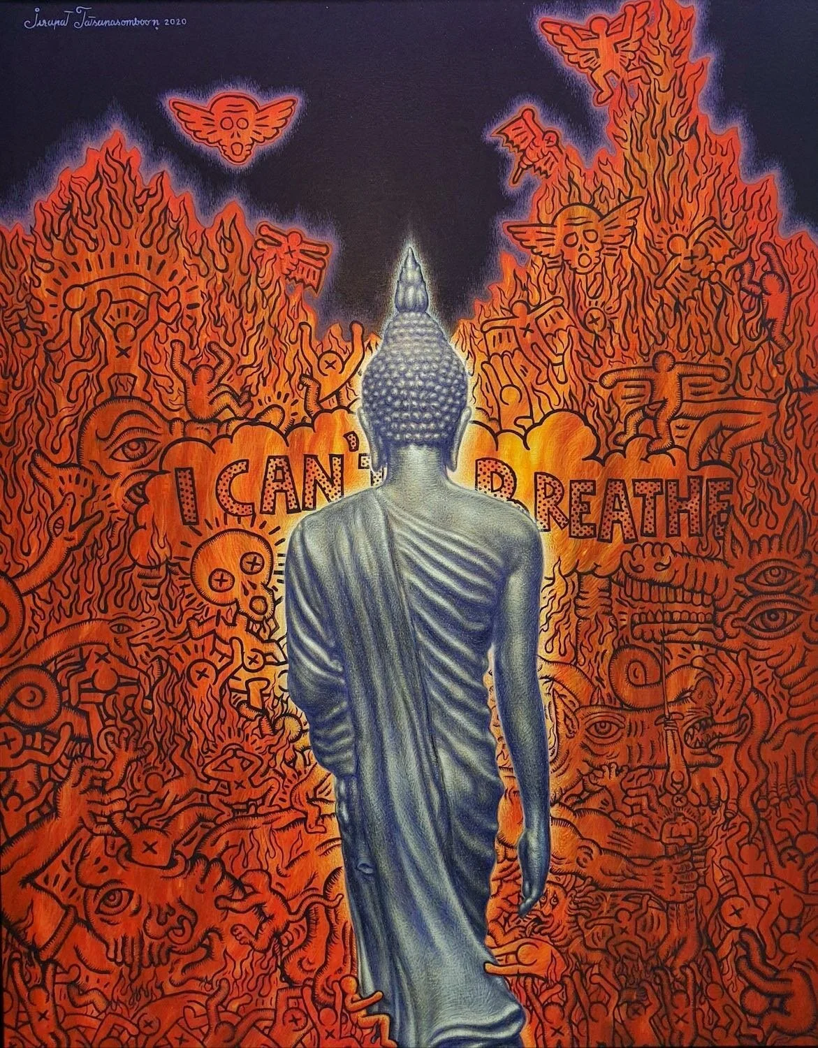 Featuring eight paintings by Thai artist Jirapat Tatsanasomboon, Compassion in Adversity