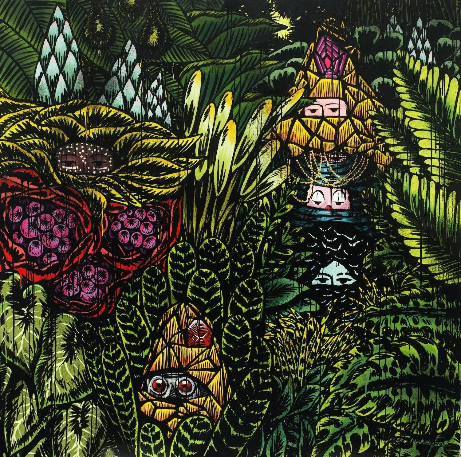 Eko Nugroho, Unity in Hiding #1, 2018, acrylic on canvas, 200 x 200cm. Image courtesy of the artist and Arario Gallery.