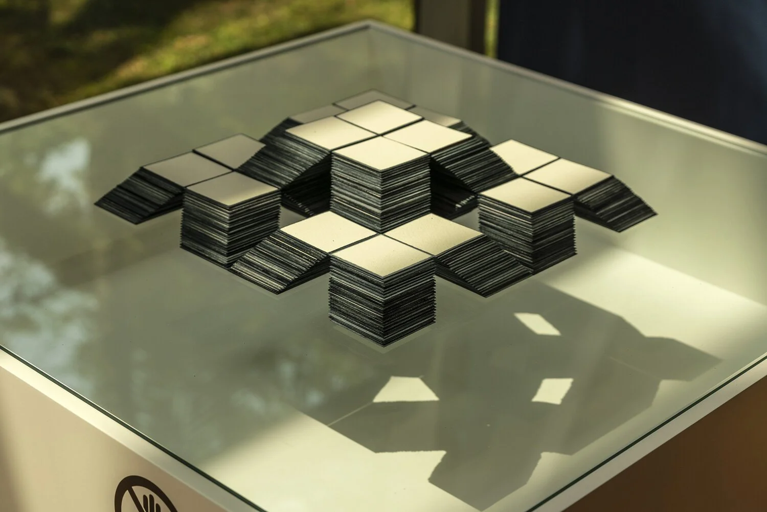 Grace Tan, Tectonics, 2018, sculpture in paper and natural indigo pigment with cowhide glue binder, 6 x 30 x 30 cm. Photographed by Darren Soh. Image courtesy of FOST Gallery.