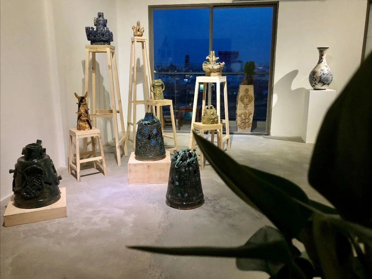 Installation of ceramic works by artists Lê Triều Điển and Hồng Lĩnh. Image courtesy of Sàn Art.