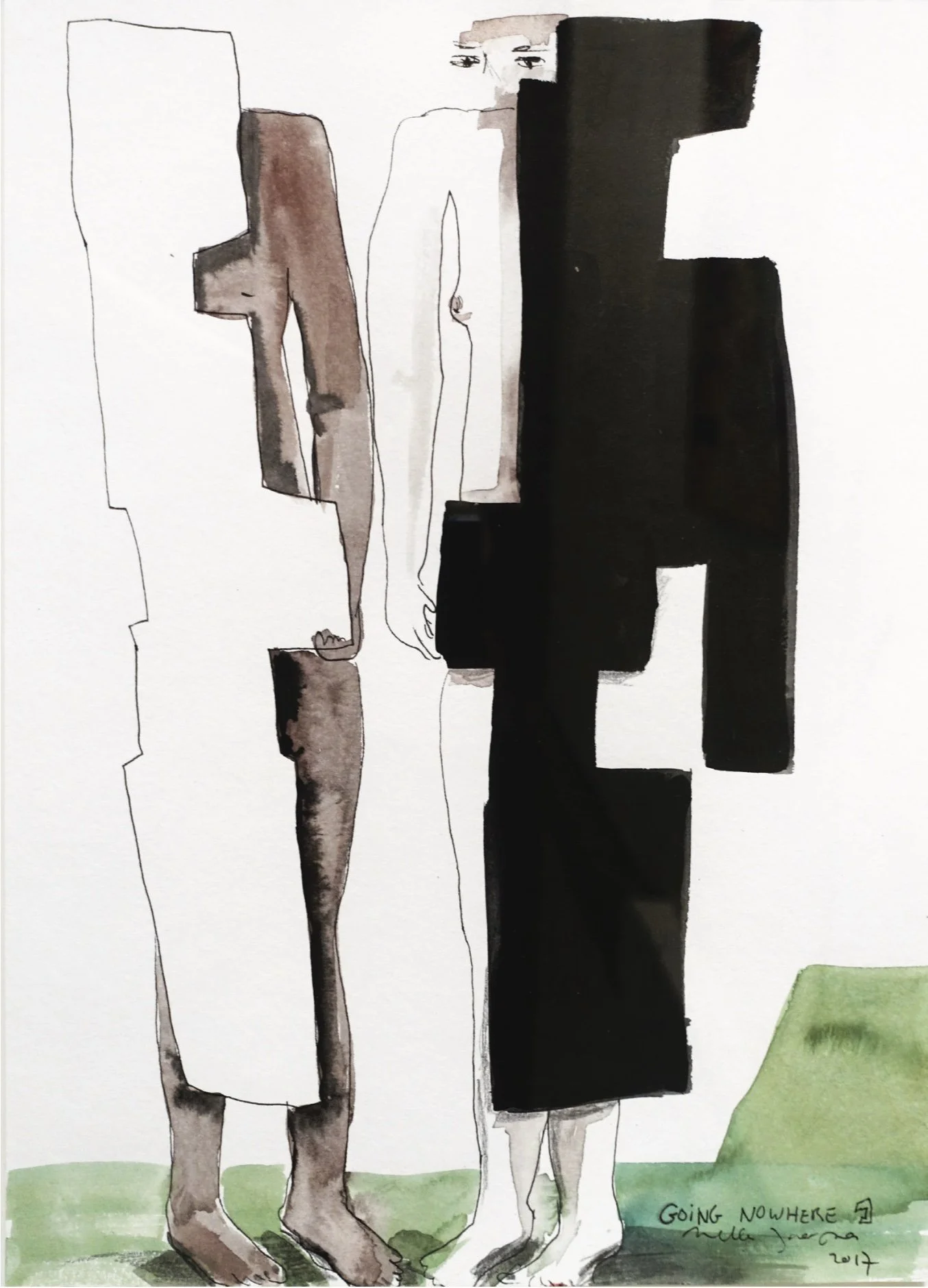 Mella Jaarsma, Going Nowhere 1, 2017, pencil and ink gouache on paper, 28 x 39cm. Image courtesy of Baik Art.