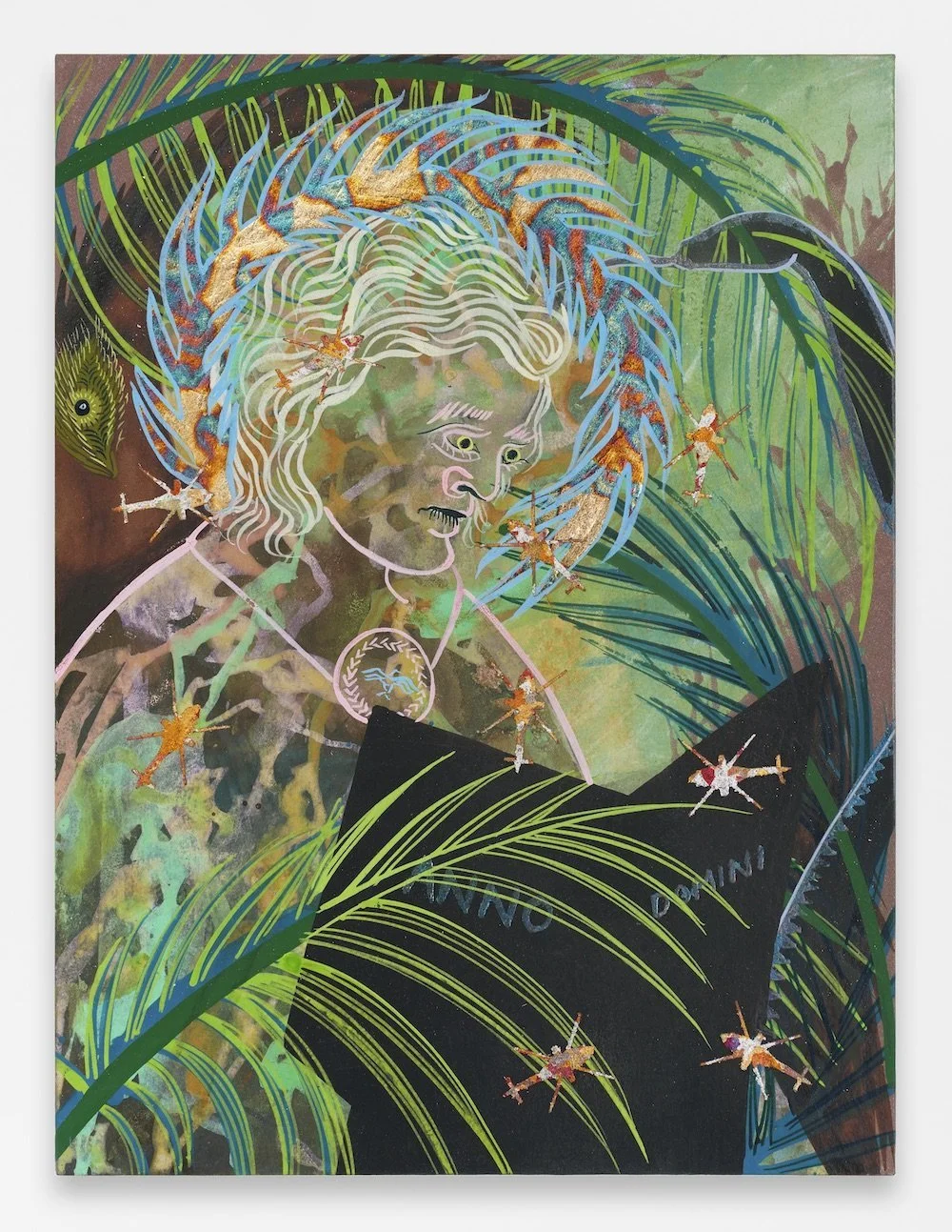 Tammy Nguyen, Angels and Saints No. 3, 2022, watercolour, vinyl paint, pastel, and metal leaf on paper stretched over wood panel, 30.5 x 23cm. Image courtesy of the artist and François Ghebaly Gallery. Photograph by Izzy Leung.