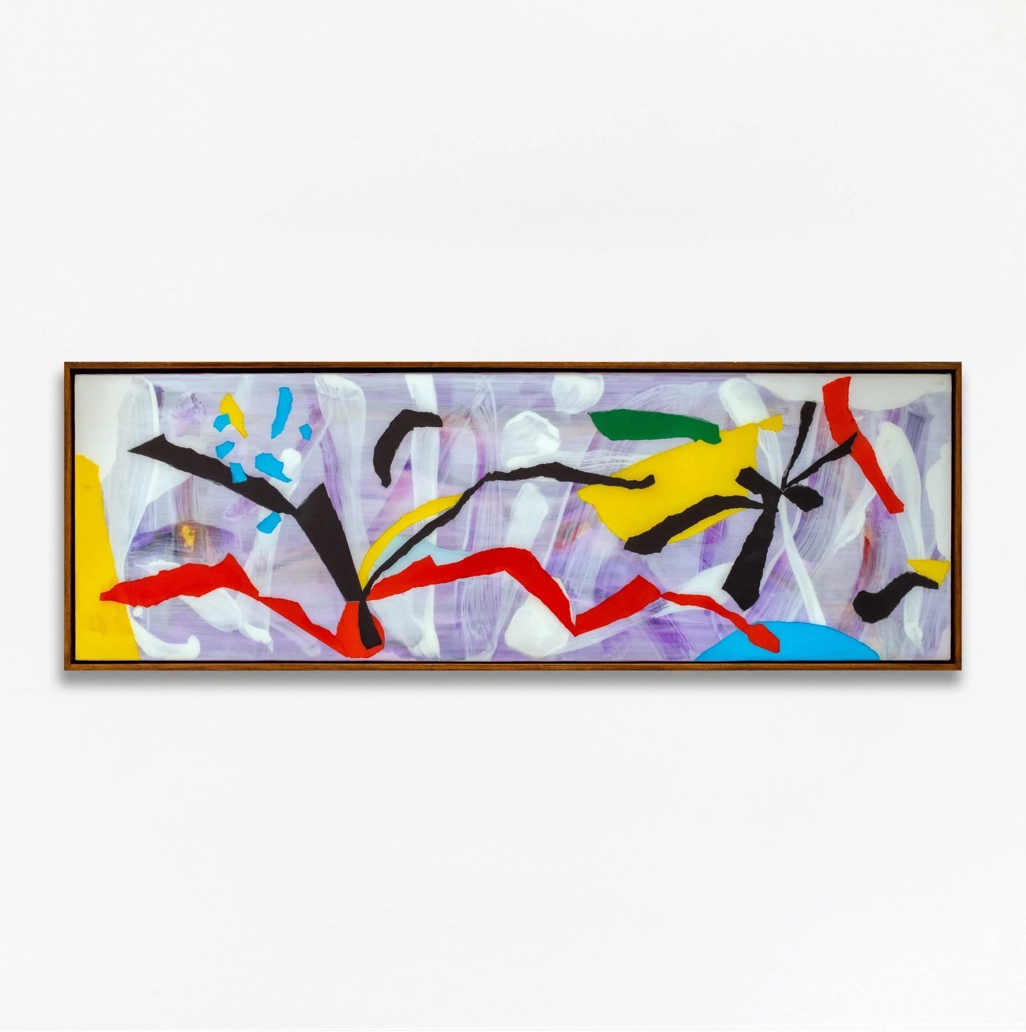 Kitikong Tilokwattanotai, Colors celebrations, 2022, acrylic, collage and lacquer on canvas, 42 x 123cm. Image courtesy of the artist and SAC Gallery.
