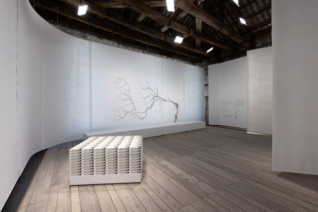 Shubigi Rao, Pulp III: A Short Biography of the Banished Book, 2022, installation view, Singapore Pavilion, Biennale Arte 2022. Image courtesy of the artist and Singapore Pavilion. Photograph by Alessandro Brasile.