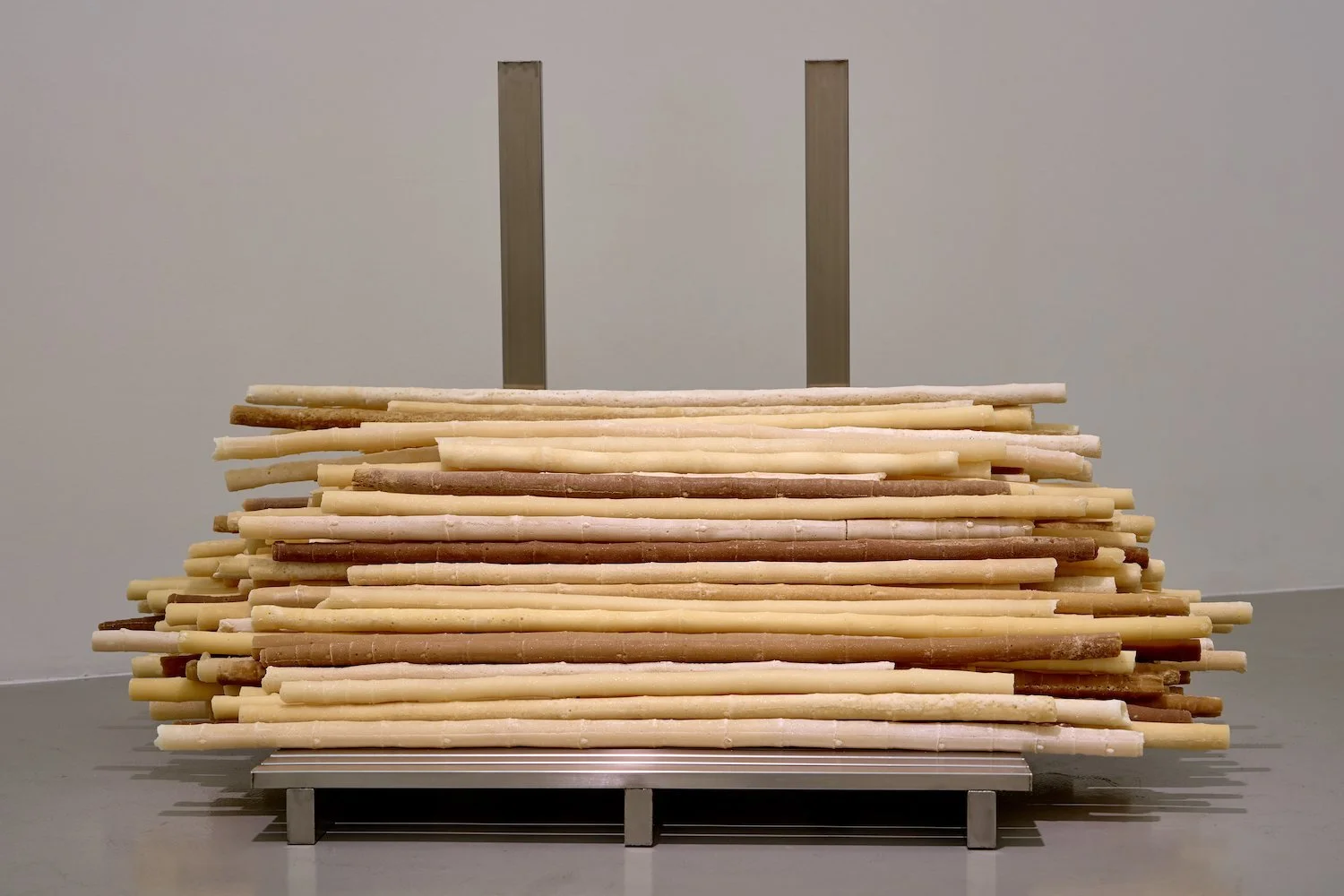 Niwat Manatpiyalert, ทองคำขาว (White Gold), 2021-2022, refined sugar sculptures and polished on stainless-steel base, dimensions variable. Image courtesy of Gallery VER.