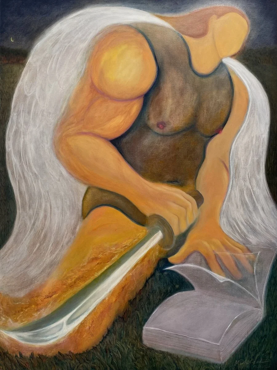 Marla Bendini, Soften Our Hearts & Harden Our Feet, 2022, oil and pastel on linen, 120 x 90cm. Image courtesy of sweet pea.