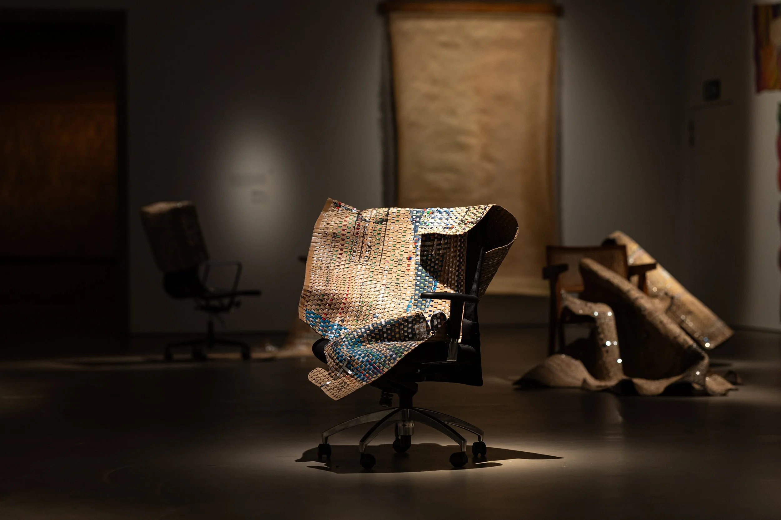 Yee I-Lann’s Mansau-Ansau is titled after the phrase for “aimless strolls” in the language of the Dusun and Kadazan of Sabah. As the title suggests, the solo exhibition underlines Yee’s open spirit in her artistic journey that has spanned more than 20 years. Simultaneously, Mansau-Ansau refers to a new bamboo pus weaving technique Yee serendipitously invented during her immersion with sea- and land-based communities in Sabah, Malaysia. The showcase invites viewers to engage with the artist’s multimedia experimentation to embrace traversing through less travelled paths.