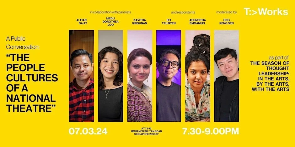 On 7 March 2024, the year-long The Season of Thought Leadership: in the Arts, by the Arts, with the Arts will kick off with the public conversation The People Cultures of a National Theatre. The inaugural event will be moderated by Ong Keng Sen, T:>Works Artistic Director. The panelists are Kavitha Krishnan, co-founder of Maya Dance Theatre (MDT) and Diverse Abilities Dance Collective (DADC), Medli Dorothea Loo, actress and theatre-maker, and Alfian Sa’at, Resident Playwright of Wild Rice. Respondents Ho Tzu Nyen and Deborah Arunditha Emmanuel will also be present. They will discuss a range of topics, including the role of artistic leadership, and issues of diversity, accessibility, and representation.
