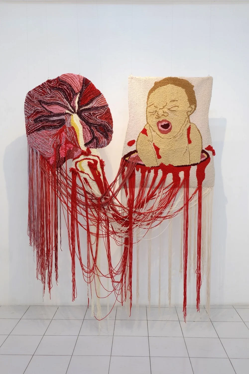 Sakinah Alatas, Imagining what I couldn’t see, 2022, mixed yarn with manual and machine tufting. Image courtesy of 16albermarle.