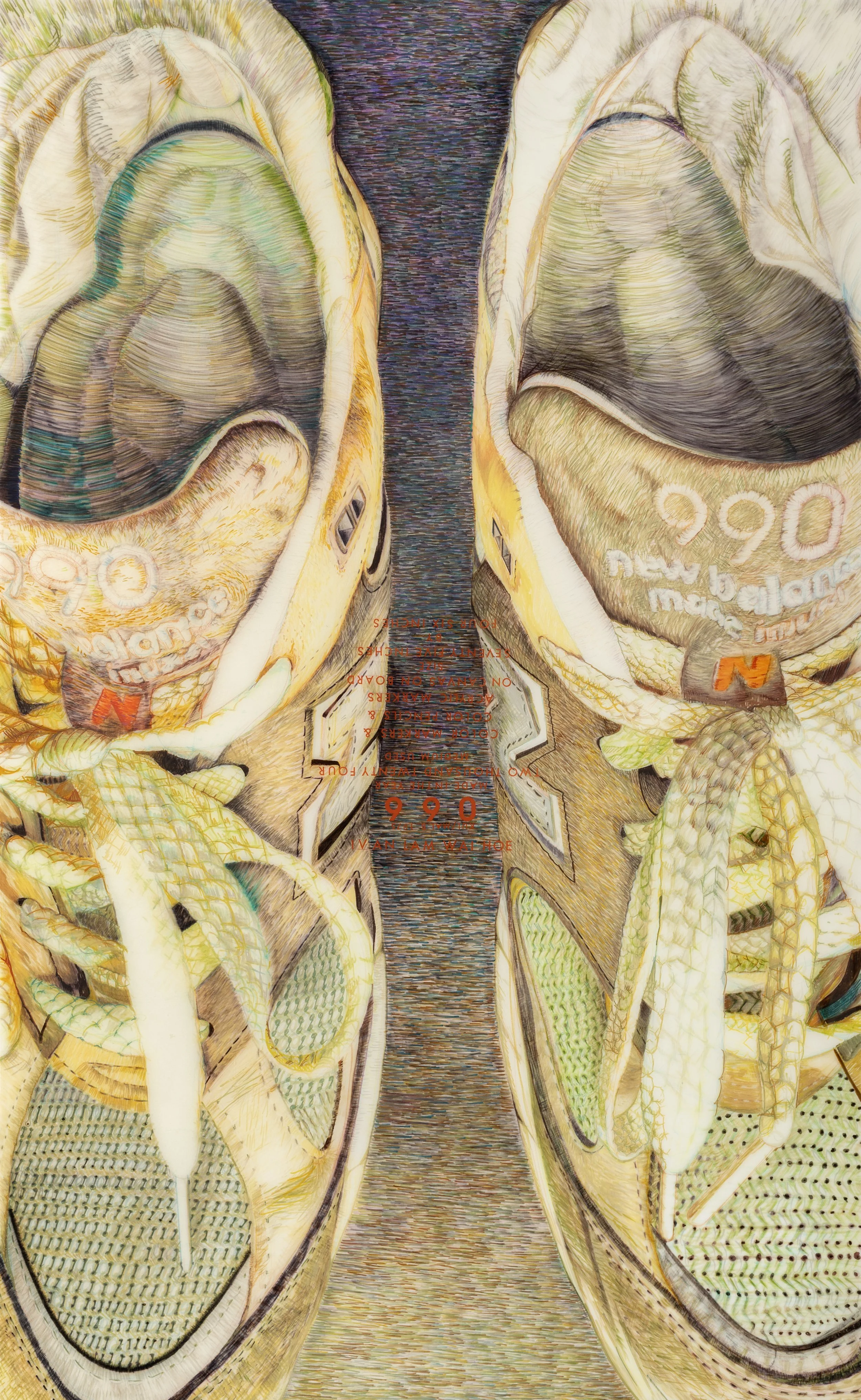 Ivan Lam, 990, color markers and color pencils on canvas on board, 190cm x 117cm, 2024. Image courtesy of Wei-Ling Gallery.