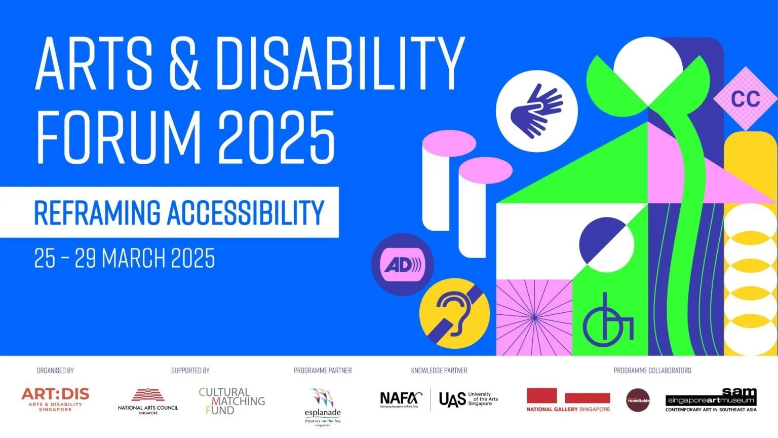 The Arts and Disability Forum will run from 25 to 29 March 2025 at multiple locations in Singapore. For the full programme, click here. Registration for the forum is free, and can be done here.