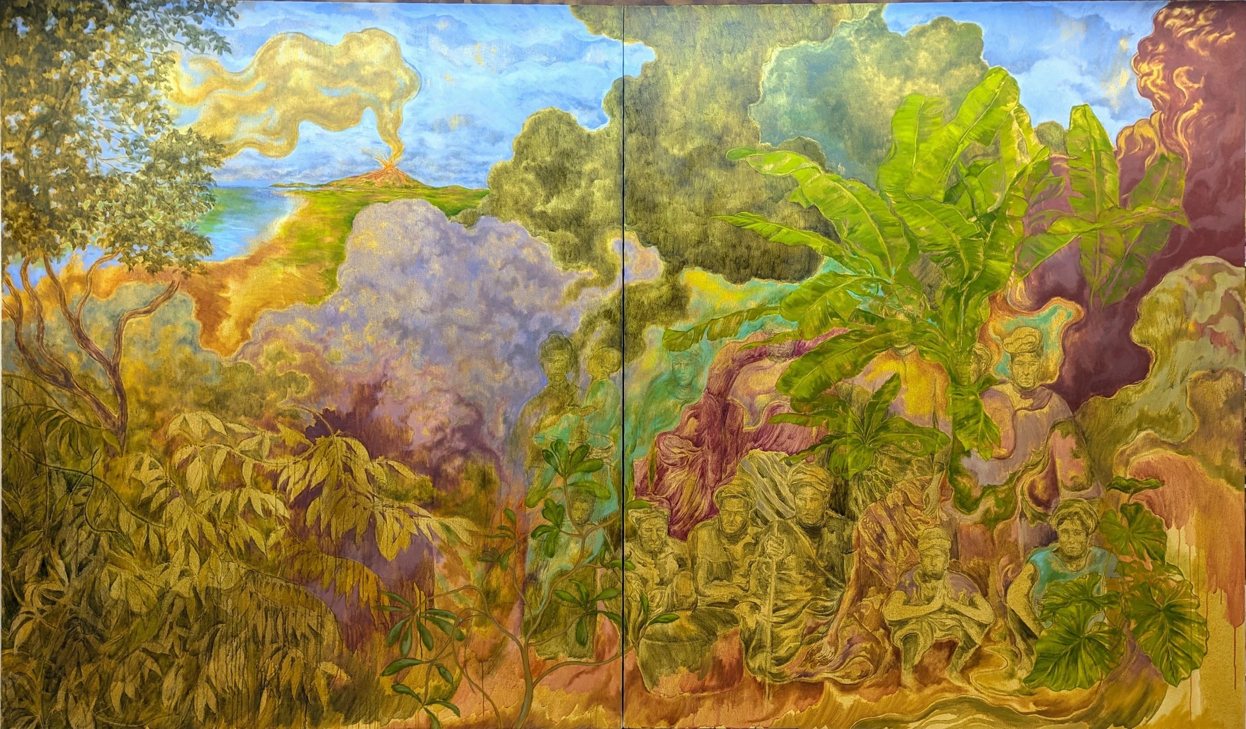 Khairrulddin Wahab, On the Origin of the World, 2025, oil and acrylic on canvas, 200 x 340cm. Image courtesy of Tina Kim Gallery.
