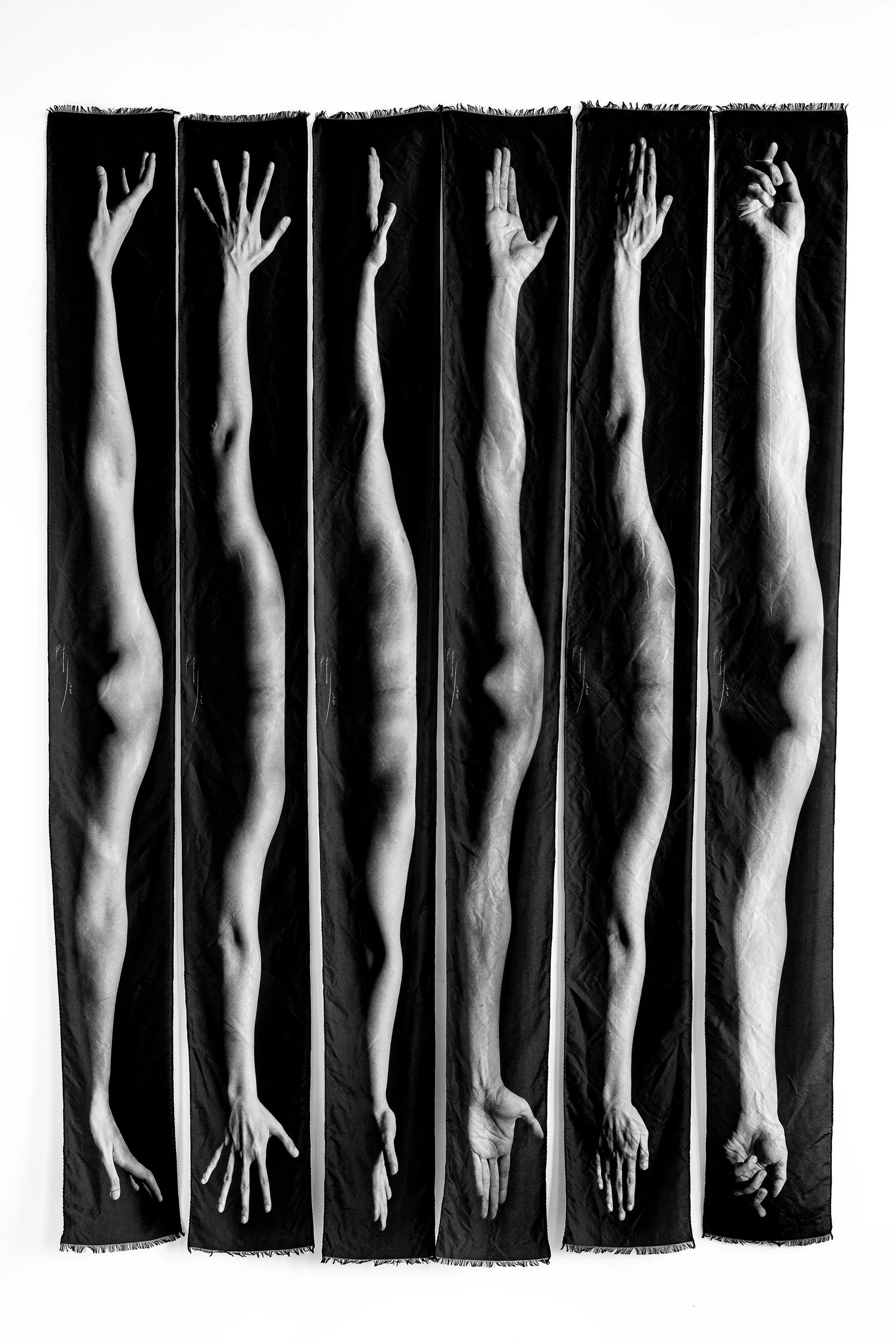 Yanyun Chen, The Thought Visits You (I-VI), 2020, silk habotai with eyelash fringe and machine roll hem, 180 x 20cm. Image courtesy of Sullivan + Strumpf and the artist.
