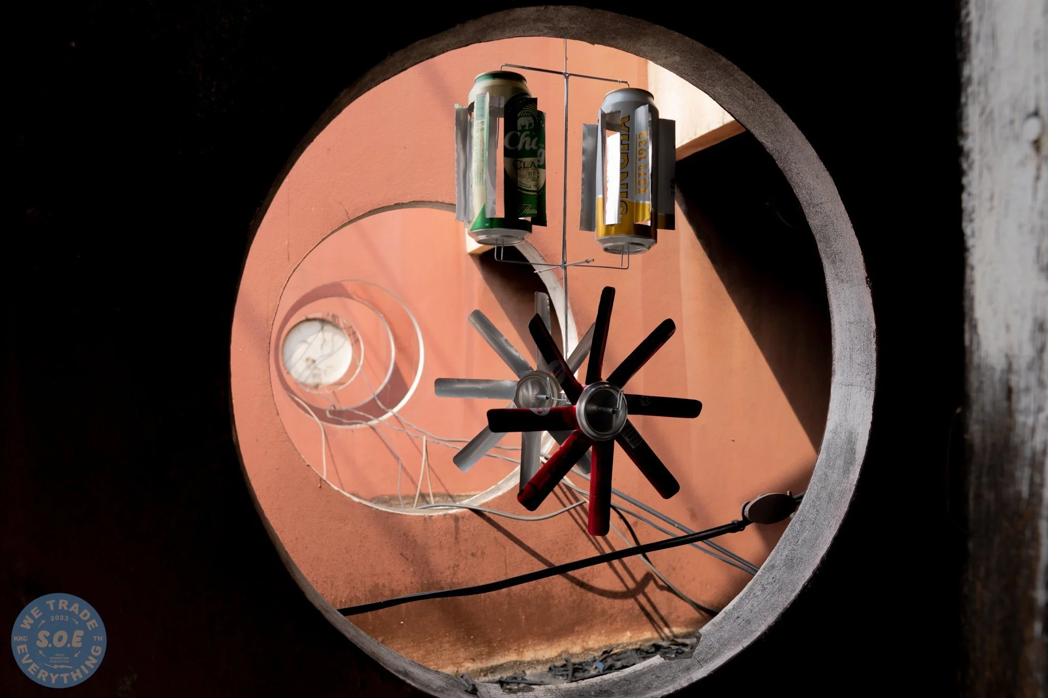 Low Pey Sien, Memory of Windmill, 2023, site-specific installation of windmills made with used aluminium cans, dimensions variable. Image courtesy of SOE 2023.