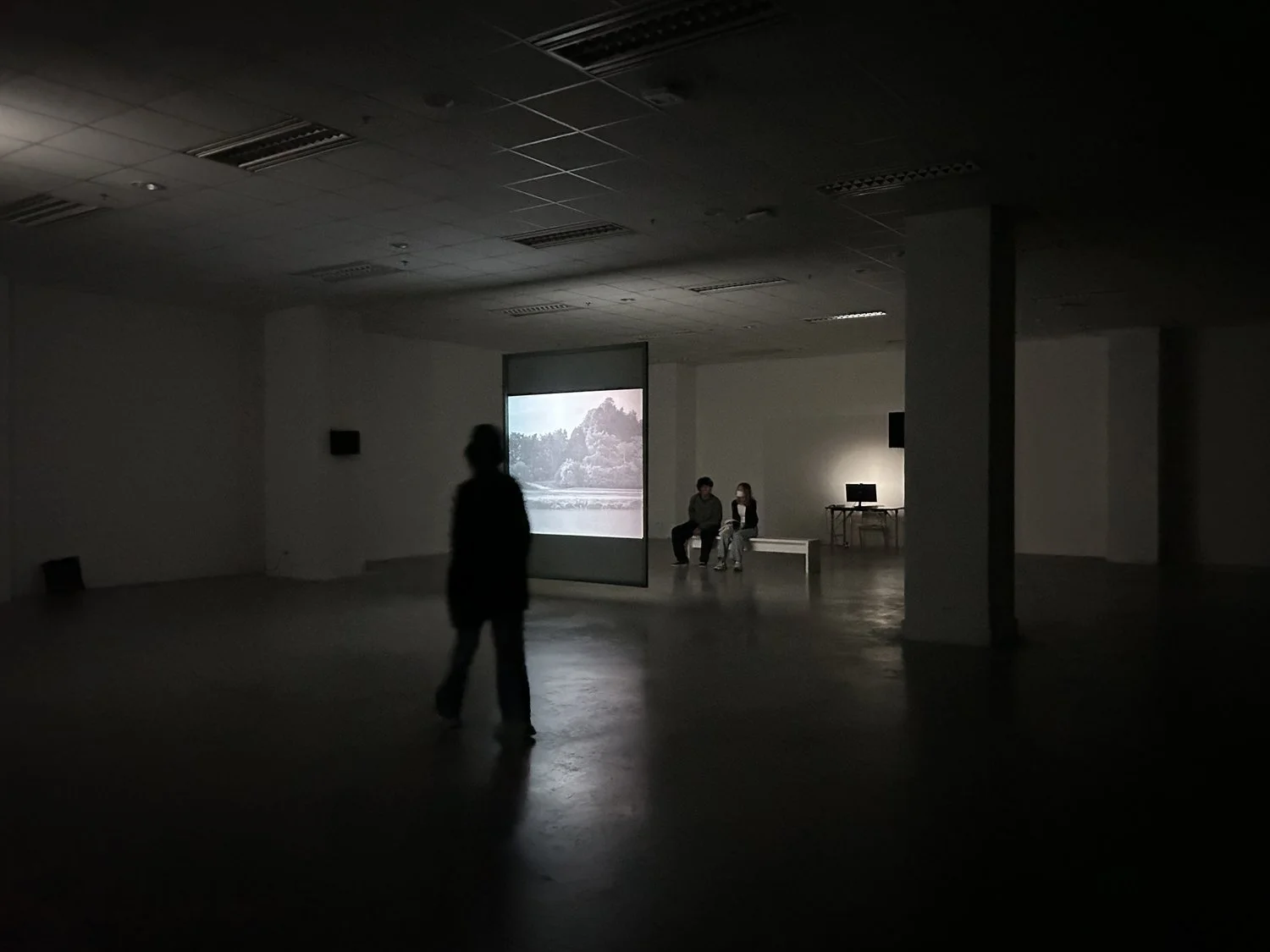 In March 2023, ~ was invited to manifest as an onsite exhibition at Bangkok University Gallery (BUG). We extended the theme of movement by inviting Yuki Kishino, a Japanese artist based in Berlin, to conceive this first physical installation. It consisted of a set up where offline visitors became part of a live stream that the online audience could watch remotely on our website. We called this exhibition ~ onsite 01, in hopes that the project would be invited to show again and we could invite new artists to come up with other configurations.