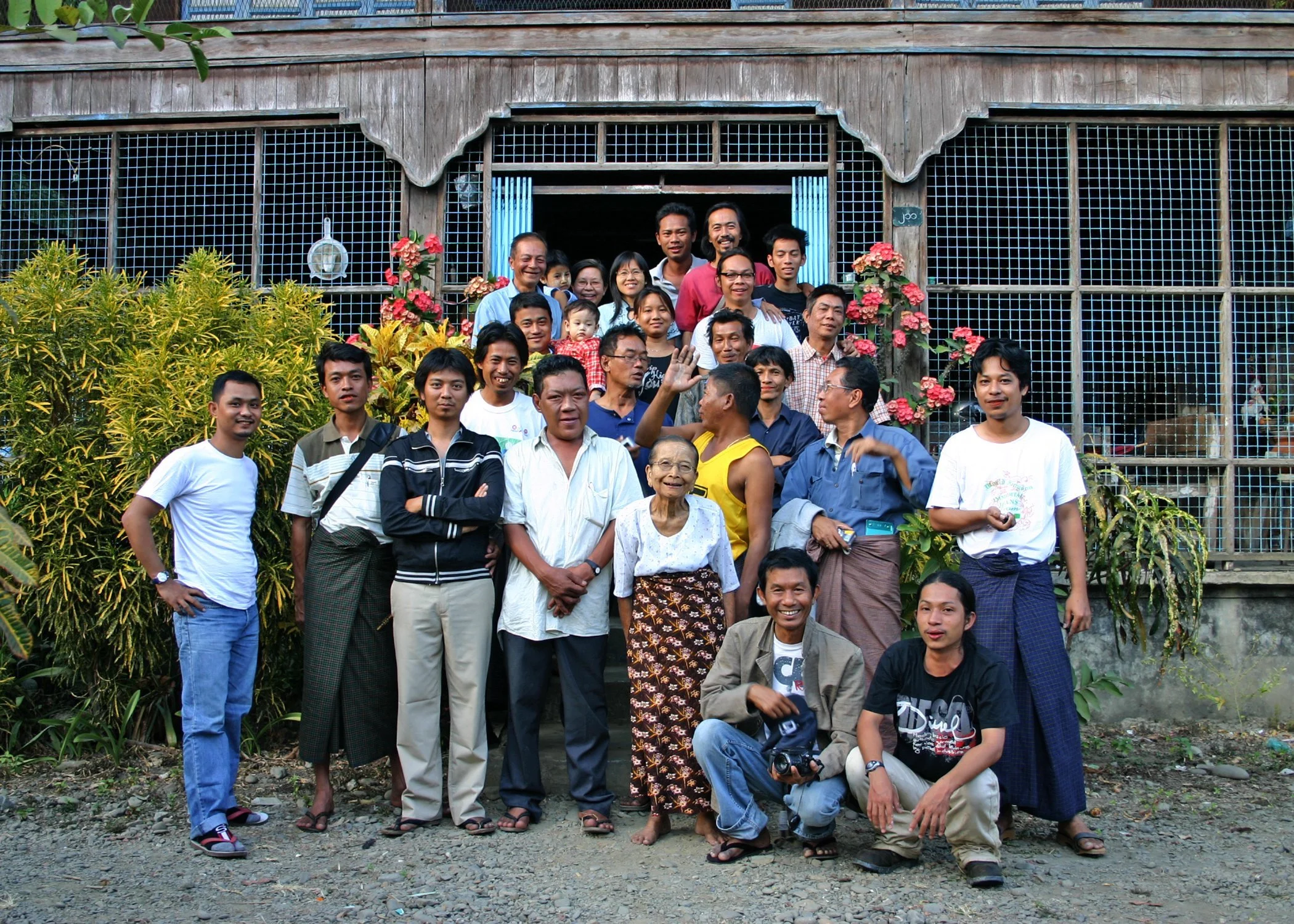 Group photo of Thuyédan Village Art Project 1 participants taken at Aung Ko’s parents' home, Thuyédan village, 2007. Image courtesy of Aung Ko and Nge Lay.