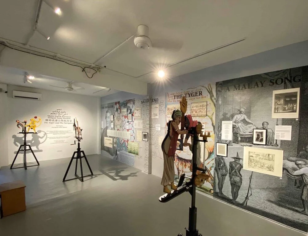 Liza is often quite happy to step back from the spotlight and to be flexible to artists’ vision of their work. Liza quips, “I don’t want to just hang works and be done with it. People should feel very different, and almost be confused as to whether it’s the same space as the last exhibition.” In The Tyger and the Navigator, art historian Simon Soon takes on an alter ego Salman bin Soon, reimagining The Back Room as a staging ground for a wayang, pulling together digital detritus across the public domain to construct a visual barge that floats across long winding histories—colonial, indigenous, and in between—of the Nusantara region. The Back Room is not a white box gallery; each exhibition carries with it a unique sense of space, and the venue is reborn each time in a different mould.