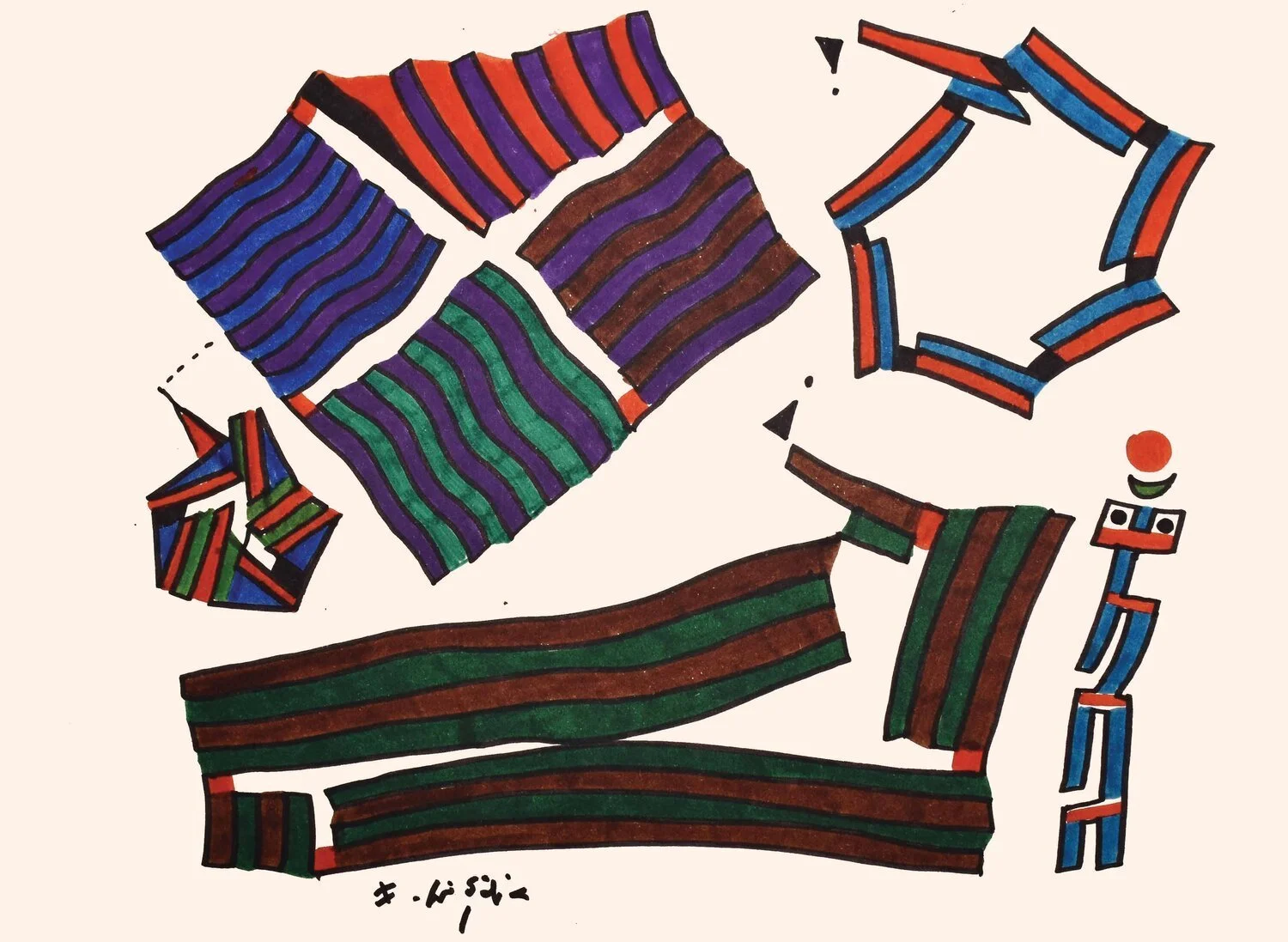 Fadjar Sidik, Untitled (Lurik), marker on paper, 27 x 37cm. Collection of Nasirun.