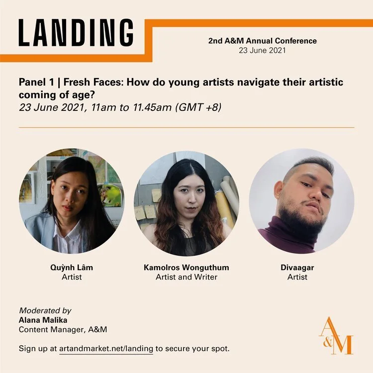 The beginning of an artist’s career is a liminal time where one constructs their identity and positionality within the art industry. What will emerge from a generation whose artistic coming of age coincides with a global pandemic, digital industrialisation, and political unrest? This panel will join together artists from our ‘Fresh Faces’ series, who will speak about finding their niche in the Southeast Asian art world.