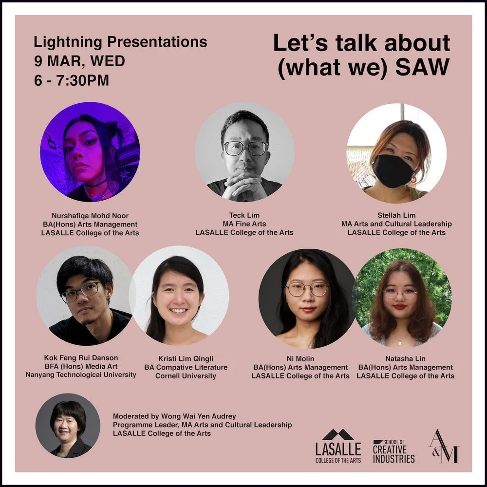 Let’s talk about (what we) SAW was a two-part forum in response to Singapore Art Week 2022, organised by MA Arts and Cultural Leadership programme at LASALLE College of the Arts in partnership with A&M.