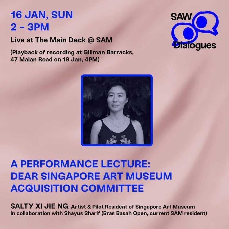 In collaboration with Shayus Sharif (Bras Basah Open, current SAM resident), Salty Xi Jie Ng presents her ongoing research, based on interviews with SAM directors, curators, and fellow artists.